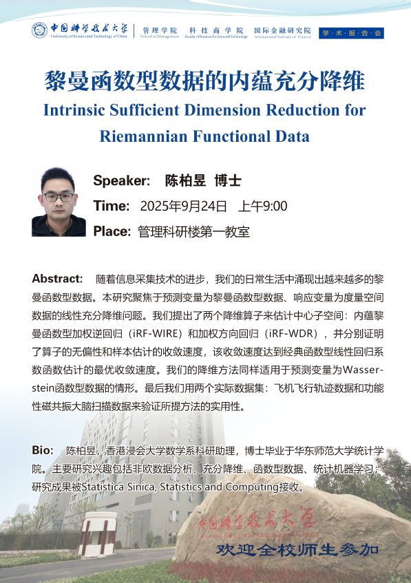 学术报告会 | 黎曼函数型数据的内蕴充分降维