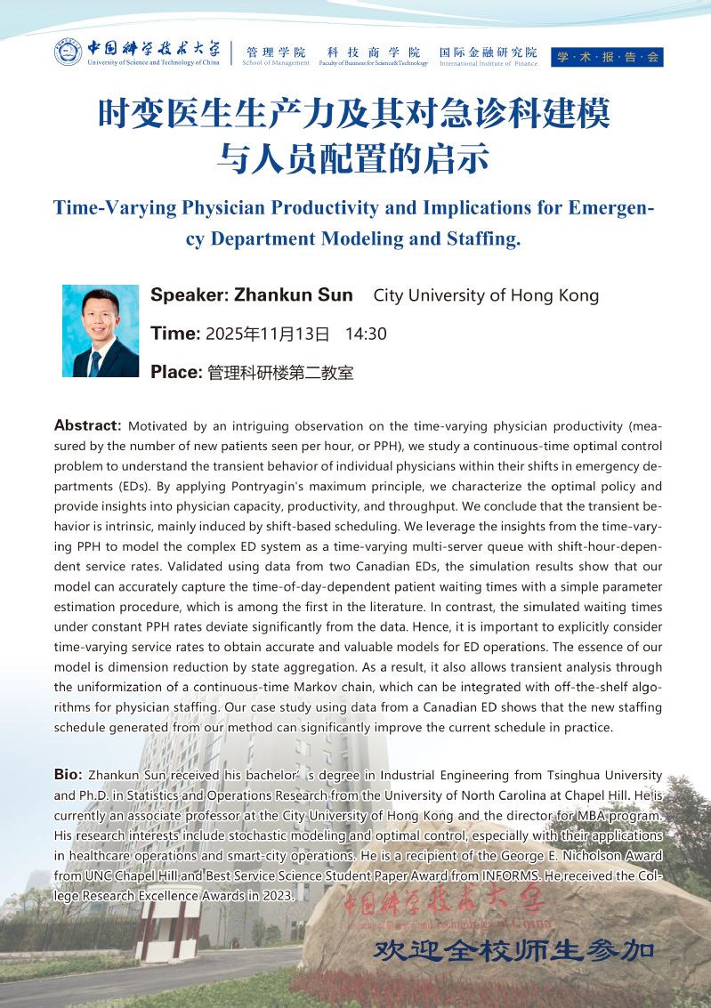 学术报告会 | 时变医生生产力及其对急诊科建模与人员配置的启示