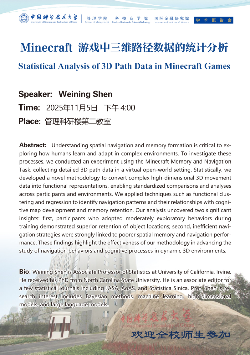 学术报告会 | Minecraft 游戏中三维路径数据的统计分析