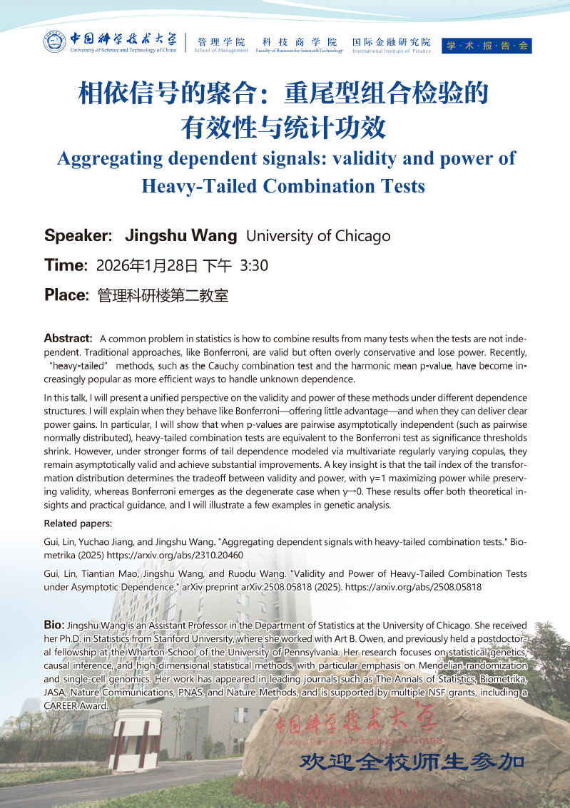 学术报告会 | 相依信号的聚合:重尾型组合检验的有效性与统计功效