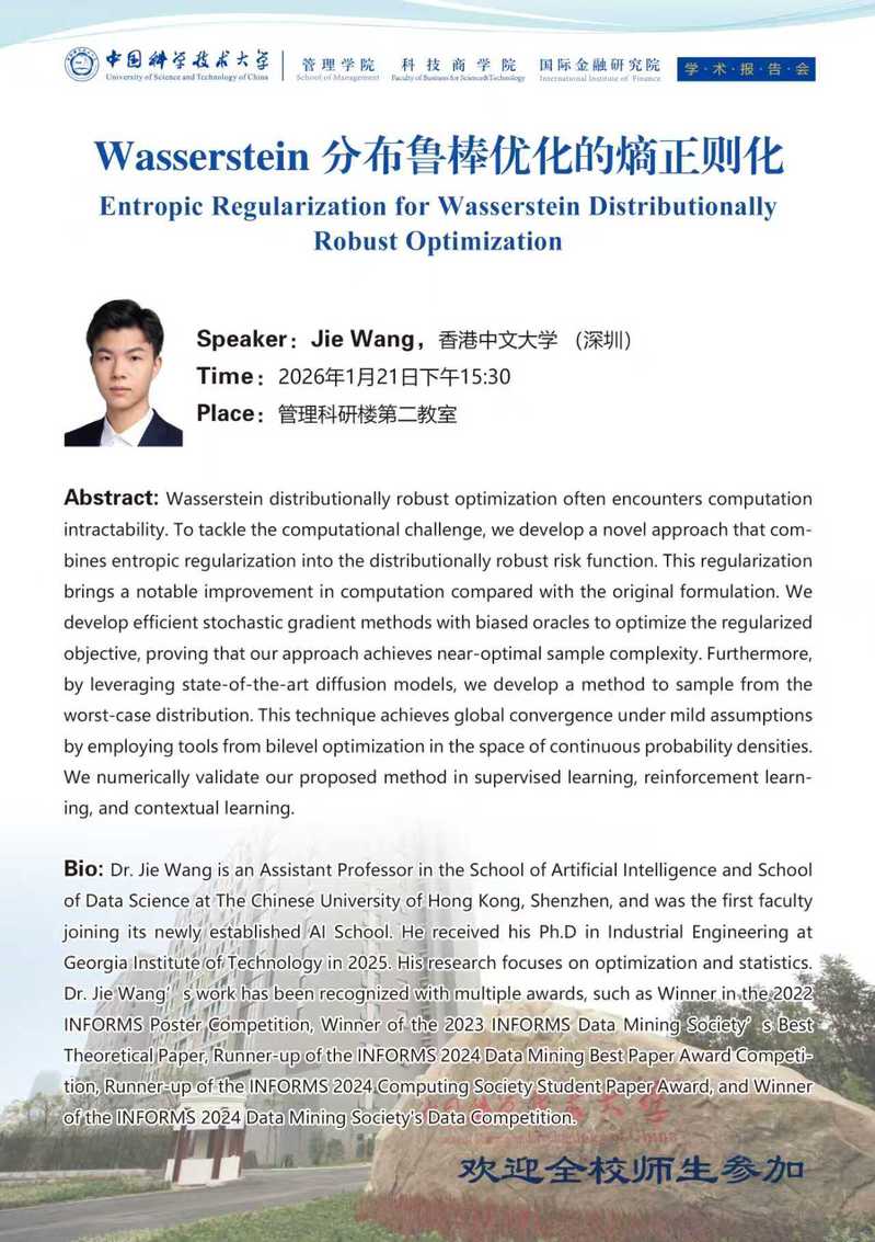 学术报告会 | Wasserstein分布鲁棒优化的熵正则化
