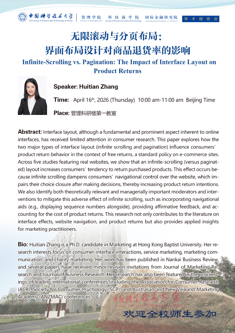 学术报告会 | 无限滚动与分页布局:界面布局设计对商品退货率的影响