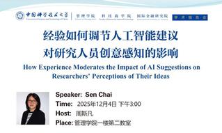 学术报告会 | 经验如何调节人工智能建议对研究人员创意感知的影...