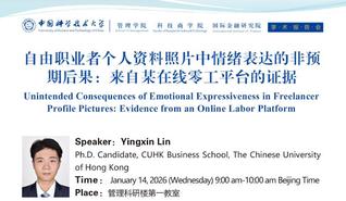 报告人:Yingxin Lin时间:2026年1月14日,上午9:00地点:管理科研楼第一教室