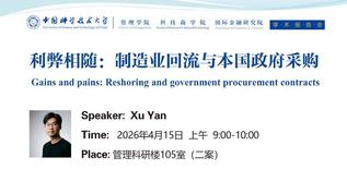 报告人:Xu Yan时间:2026年4月15日,上午9:00地点:管理科研楼105室(二案)
