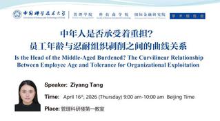 学术报告会 | 中年人是否承受着重担?员工年龄与忍耐组织剥削之...