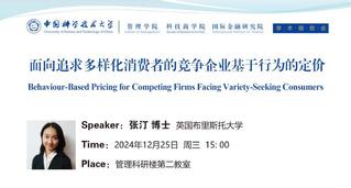 学术报告会 | 面向追求多样化消费者的竞争企业基于行为的定价