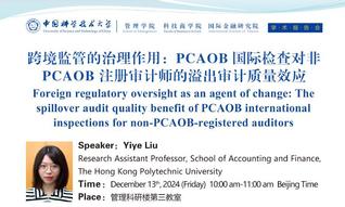 学术报告会| 跨境监管的治理作用:PCAOB国际检查对非PCAOB注册审...