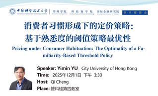学术报告会 | 消费者习惯形成下的定价策略:基于熟悉度的阈值策...