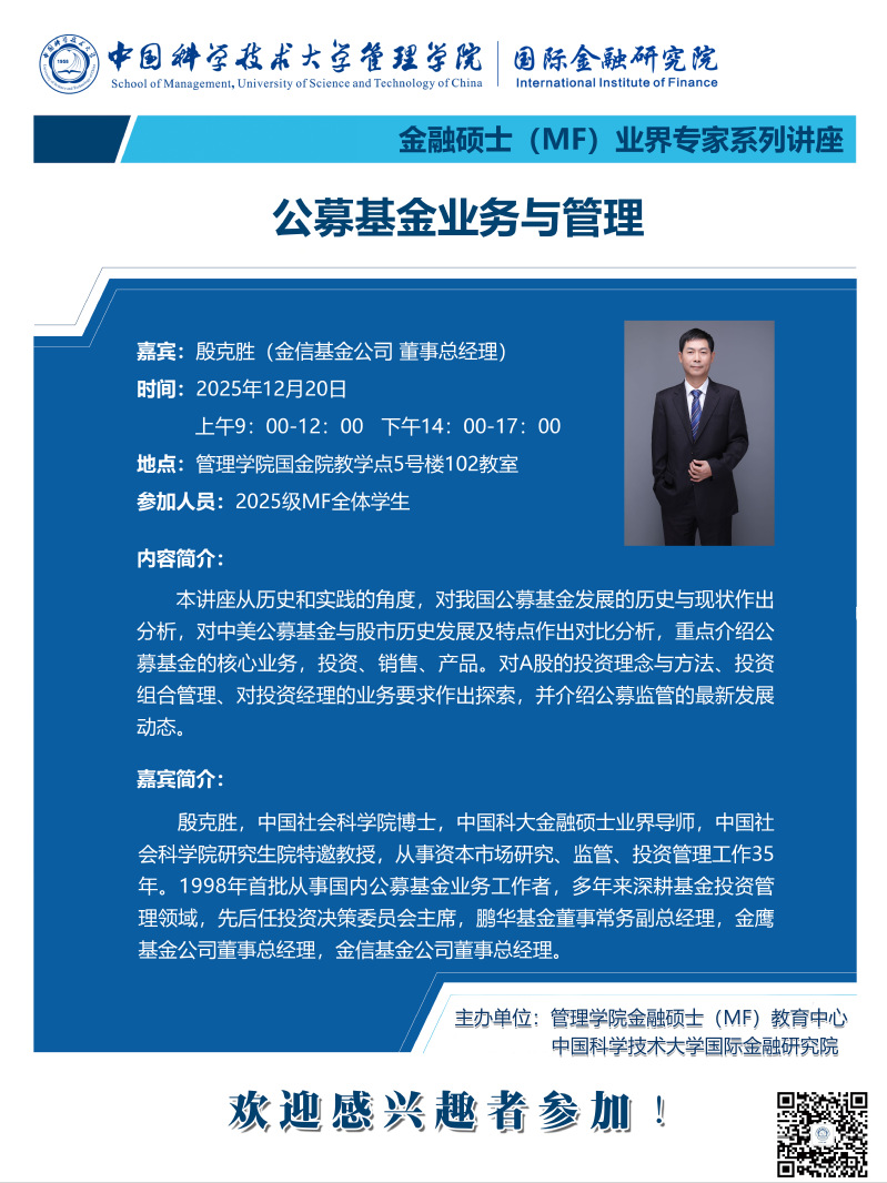 MF业界专家讲座 |公募基金业务与管理