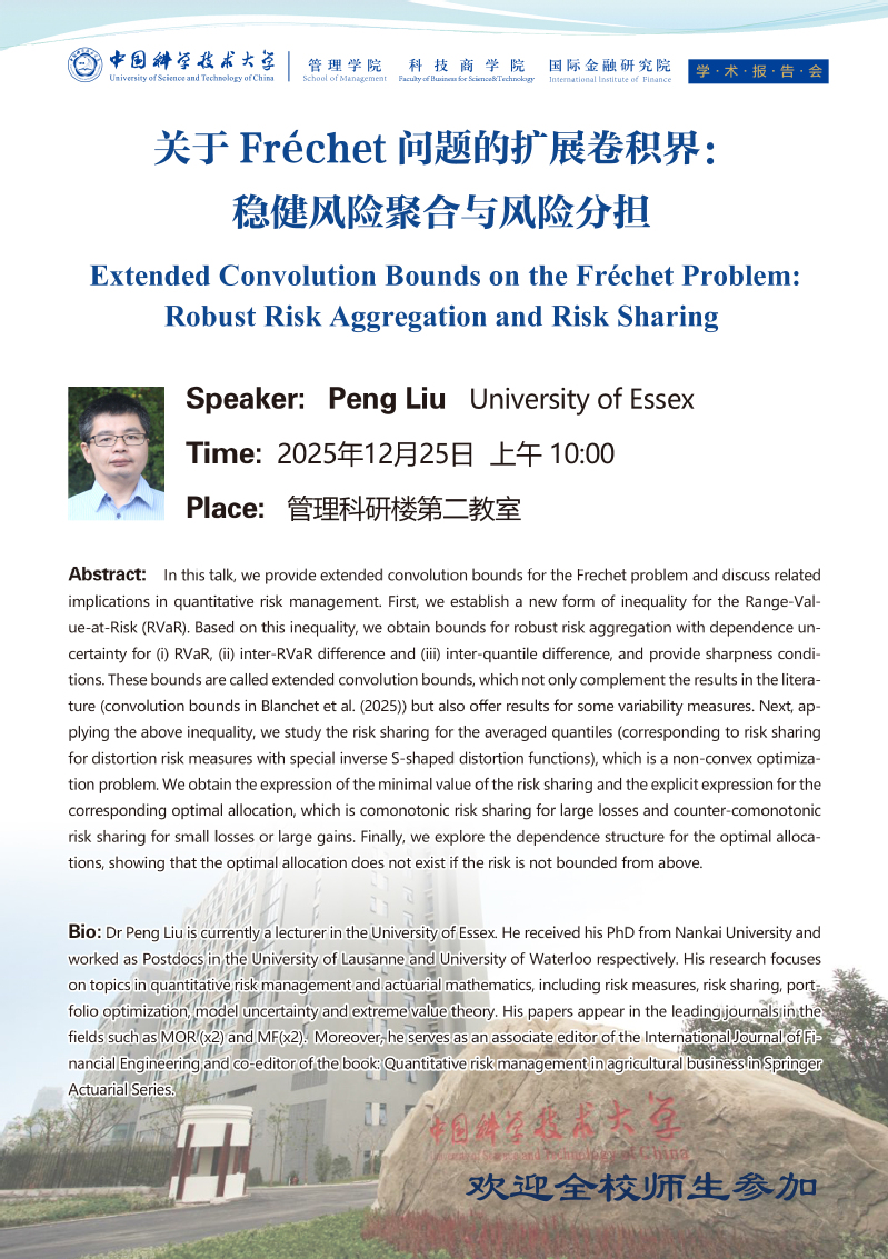 学术报告会 | 关于Fréchet问题的扩展卷积界:稳健风险聚合与风险分担