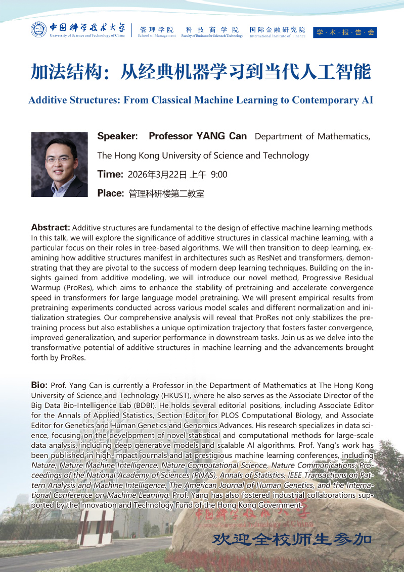 学术报告会 | 加法结构:从经典机器学习到当代人工智能