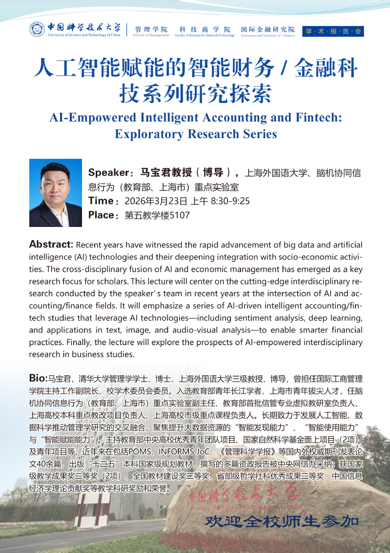 学术报告会 | 人工智能赋能的智能财务/金融科技系列研究探索